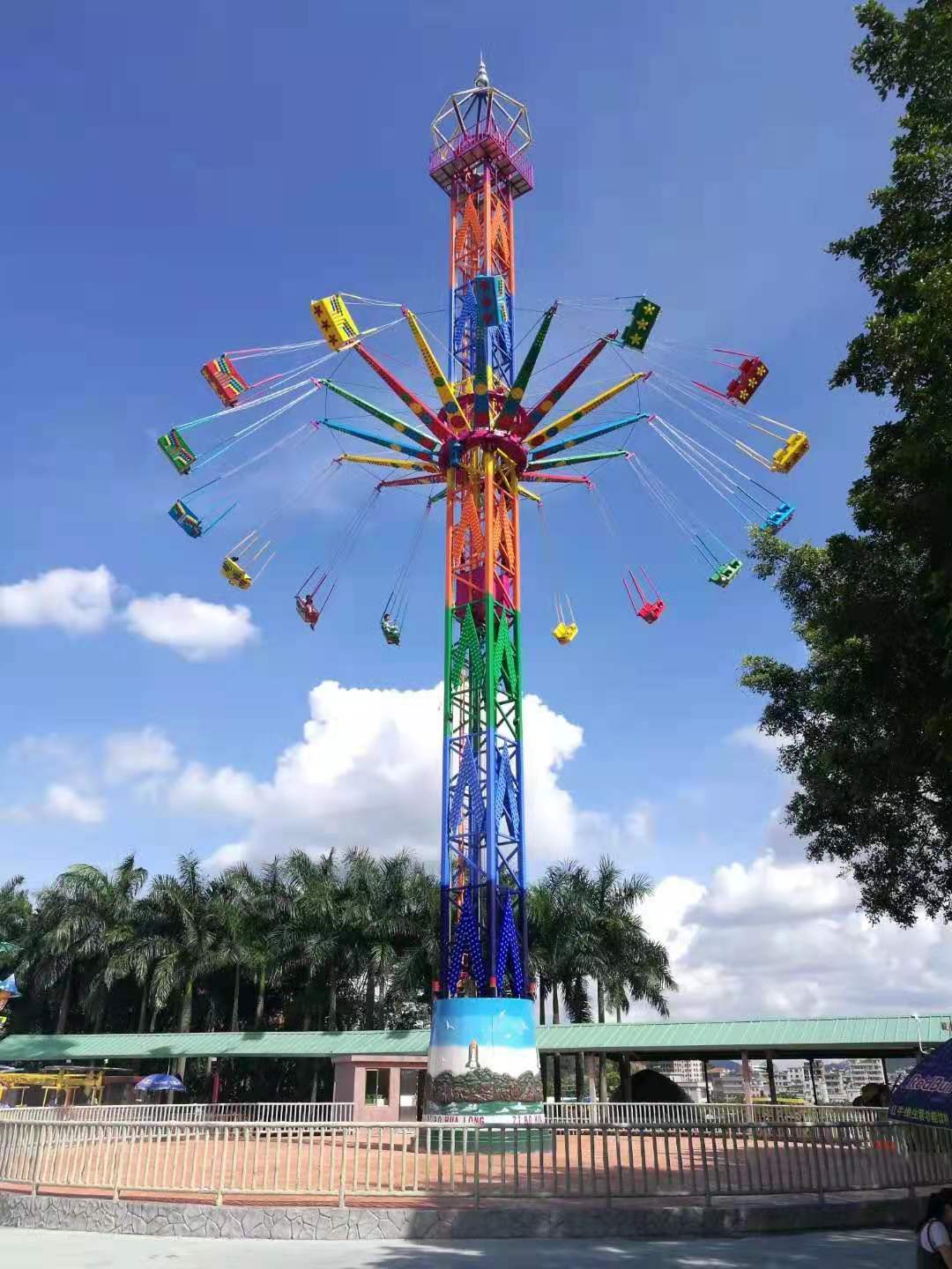 高空飛翔 小型高空飛翔 安裝(zhuāng)型式(shì):固定式 設備級別(bié):B級 設備高度:31.8米 承載人數(shù):32人 功率KW:67kw 在線谘詢 產品詳(xiáng)情 GF-32C高空飛(fēi)翔,是我公司根據市場需求,新近開發的一種飛行塔類大型遊樂設施。采用本公司專利技術,結構宏偉、裝飾簡潔典雅,遊樂效果(guǒ)上乘。 乘客隨座椅用圓環鏈懸掛於轉(zhuǎn)盤上,隨轉盤同時作旋轉和上、下的複合運動,使(shǐ)乘客感(gǎn)受(shòu)旋轉離心力和運行高度的(de)無窮樂趣。該專利技術一改此類遊樂設備結構複雜、成本偏高等(děng)諸多弊端,使購買費用大大降低,運行維護成本減少,是老少皆宜,集(jí)娛樂性、驚險性和刺激性於一體的(de)地標(biāo)性(xìng)遊樂(lè)設施。 夜晚來臨,其高聳的塔身,在(zài)遊樂園中更顯(xiǎn)尊貴;五彩(cǎi)的燈光(guāng),在隨乘客旋轉運動中,猶如一道道彩虹當空舞,更顯絢麗奪目,富麗(lì)繽紛。 它(tā)必將成為遊樂場或嘉年華活動中一款理想的遊樂產品。以最小的運(yùn)行成本,獲得最大經濟效益。該設備充(chōng)分考慮運輸、安裝(zhuāng)等方麵的實(shí)際需要,采用分體式結構,具有科技含(hán)量高,運行成本低廉(lián),設備維護簡單,乘坐安全舒適,投資回報(bào)豐厚等突出特點。 該(gāi)設備主要投放市場有河北省張家口市張北縣中都草(cǎo)原度假村、乳山市銀灘海立方(fāng)族遊樂園、德州市新動植物園、貴州省銅仁市碧江區武陵山、山東龍口市徐福街道東海建設等遊樂園(yuán)。設備主要參數:安裝型式設備級別(bié)設備高(gāo)度運行(háng)高度功率占地麵(miàn)承載人固定大型A(國檢)55.8米36.8米82 kW直徑30m36人中型B(省檢)43.8米29米67 kW直徑24m32人小型B(省檢(jiǎn))31.8米18米67 kW直徑22m32人
